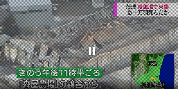 Из семи корпусов корпусов птицефермы полностью сгорели четыре, сообщает канал NHK.