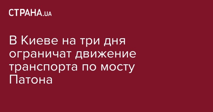 В Киеве на мосту Патона в течение трех дней будет частично ограничено движение транспорта. Об этом сообщает пресс-служба КК "Киевавтодор" в соцсети.