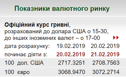 По данным НБУ, справочный курс гривны к доллару США на межбанковском валютном рынке 20 февраля укрепился до 27,0933 грн/$1 с 27,1744 грн/$1.