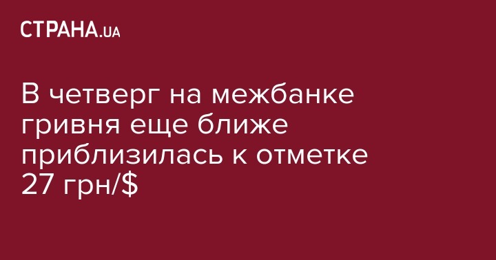 В четверг на межбанке гривня еще ближе приблизилась к отметке 27 грн/$