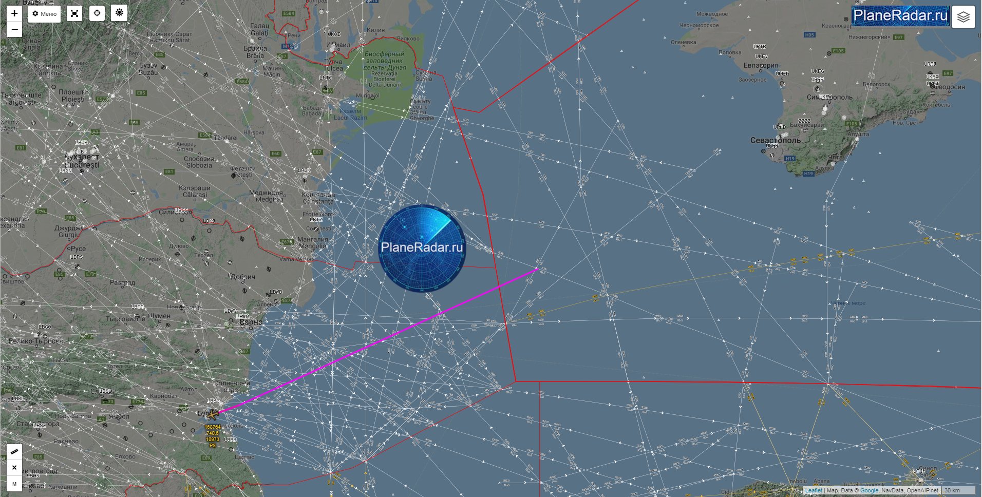 Самолет ВВС США провел разведывательный полет, пролетев в небе над Черным морем у берегов аннексированного Крыма и черноморского побережья РФ. Об этом в Twitter сообщает PlaneRadar.