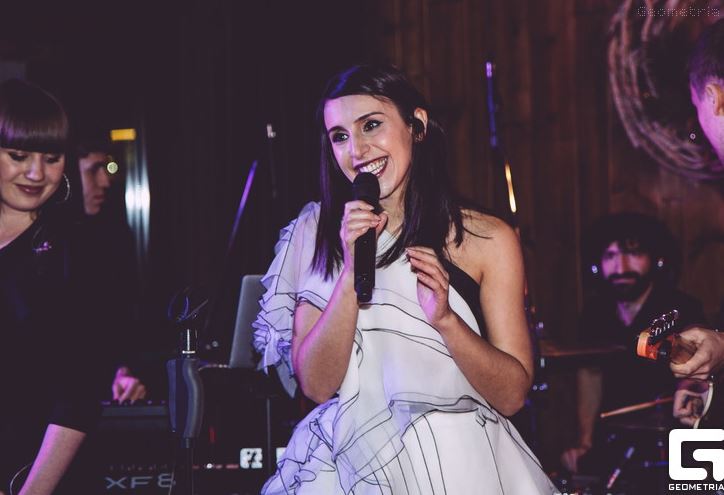 На снимках Джамала в коротком белом платье с обнаженными плечами поет на сцене ресторана. Исполнительница находится в хорошем настроении. Гости в момент ее выступления пьют, закусывают и аплодируют артистке.