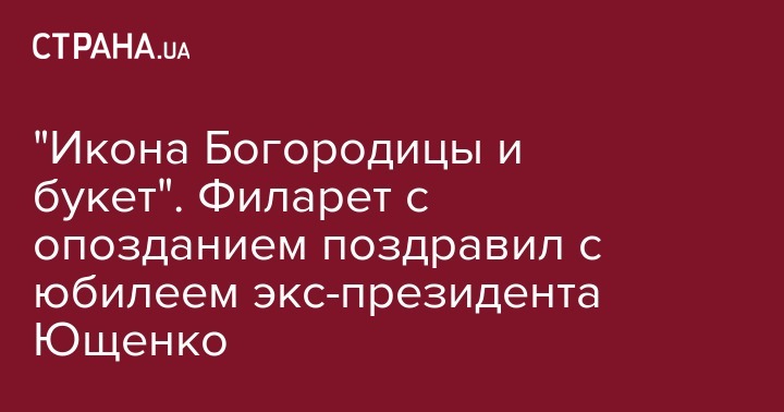 "Икона Богородицы и букет". Филарет с опозданием поздравил с юбилеем экс-президента Ющенко