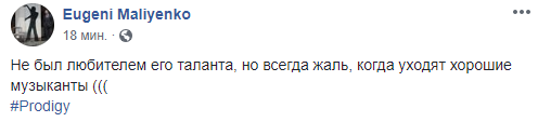 "Не был любителем его таланта, но всегда жаль, когда уходят хорошие музыканты", - отметил журналист и блогер Евгений Малиенко.