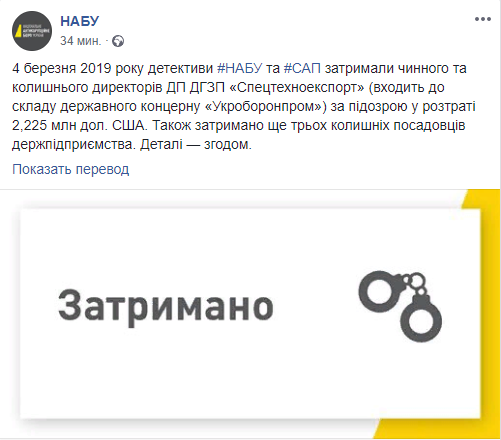 Скриншот: Facebook/НАБУ