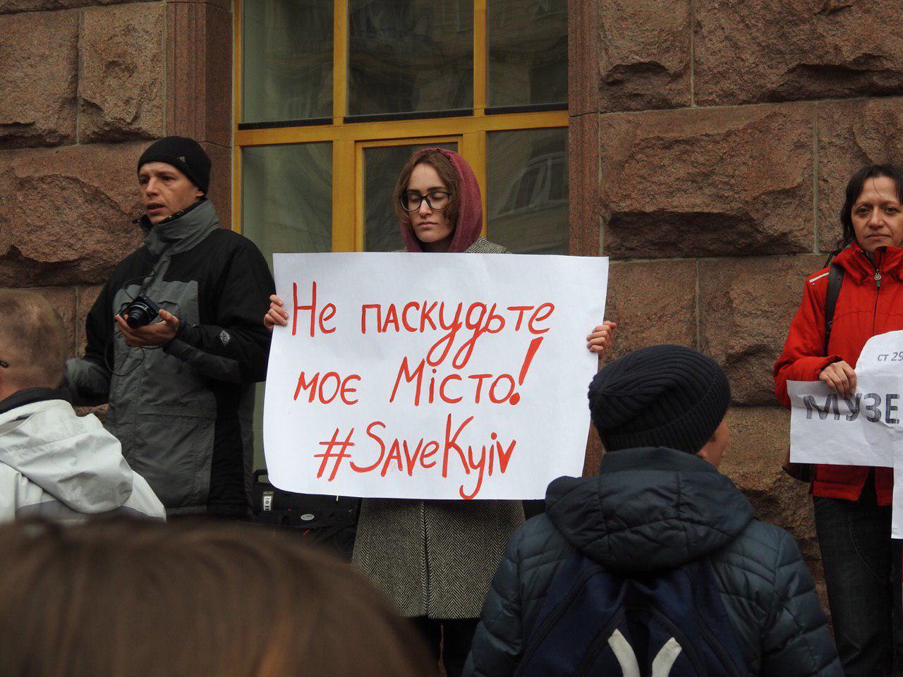 Митинг длится уже третий час. При этом протестующие пытались перекрывать Крещатик, но правоохранители им помешали. В мероприятии принимают участие до 200 человек, они находятся перед зданием КГГА. В руках у них плакаты, на которых перечислены некоторые из объектов, которые, на их взгляд, строятся незаконно, а также "#SaveKyiv", обращения к депутатам.