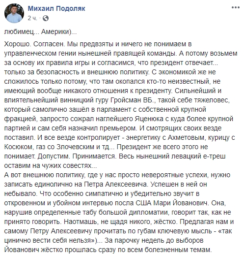 Политтехнолог Михаил Подоляк отметил, что Йованович намекнула Порошенко о недопустимости скупки голосов: