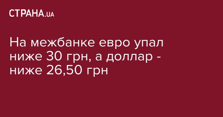 На межбанке евро упал ниже 30 грн, а доллар - ниже 26,50 грн