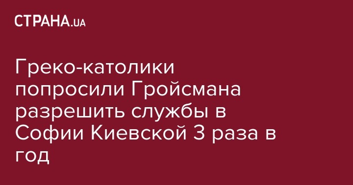 Глава Украинской греко-католической церкви (УГКЦ) Верховный архиепископ Киево-Галицкий Святослав обратился к премьеру Украины Владимиру Гройсману с просьбой предоставить разрешение на проведение церковных служб УГКЦ 3 раза в год в Софийском соборе Киева