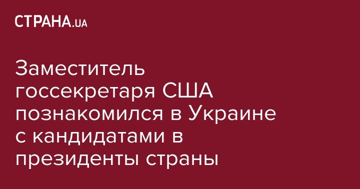 Заместитель госсекретаря США познакомился в Украине с кандидатами в президенты страны
