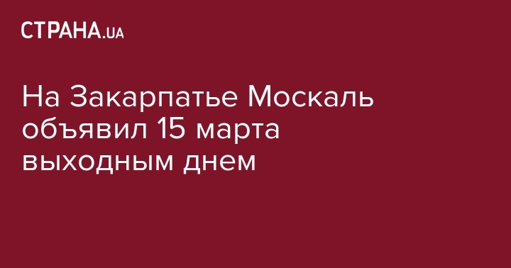 В Закарпатской области пятница, 15 марта объявлена выходным днем в связи с празднованием 80-й годовщины Карпатской Украины. Об этом сообщается на сайте главы облгосадминистрации Геннадия Москаля.