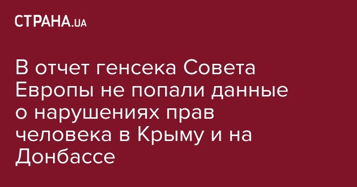 Сегодня, 20 июня, генсек Совета Европы Турбйорн Янгланд выступил с ежегодным докладом о соблюдении прав человека. В этот доклад не попали данные о нарушении прав человека в Крыму и на Донбассе.