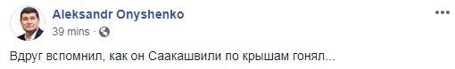 "Вдруг вспомним, как он (Петр Порошенко - Прим. Ред.) Саакашвили по крышам гонял...", - пишет Онищенко.