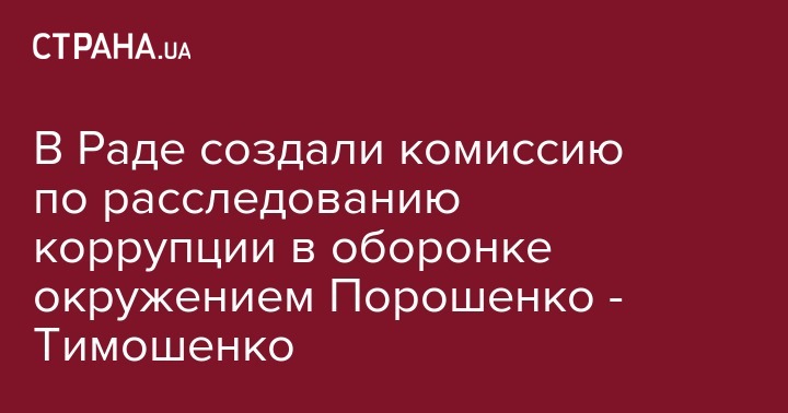 В Верховной Раде приняли решение о создании временной следственной комиссии по расследованию масштабной коррупции в оборонке окружением президента Петра Порошенко и при участии правоохранительных органов. Об этом лидер партии "Батькивщина" и кандидат в президенты Юлия Тимошенко заявила с трибуны парламента во вторник, пишет УП.