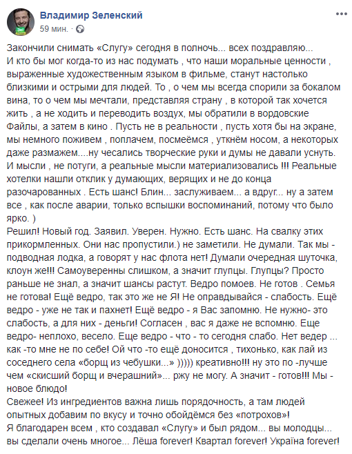 Скриншот: Facebook/Владимир Зеленский