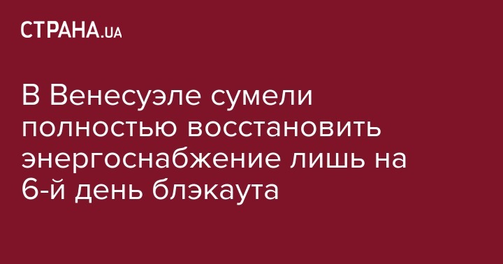 В Венесуэле сумели полностью восстановить энергоснабжение лишь на 6-й день блэкаута
