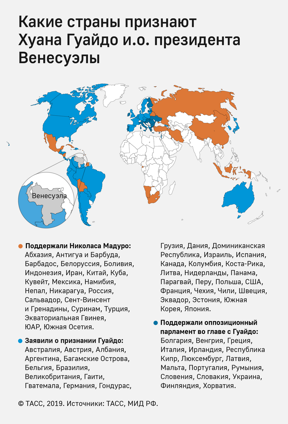 Какие страны признали лидера оппозиции Хуана Гуайдо легитимным главой Венесуэлы