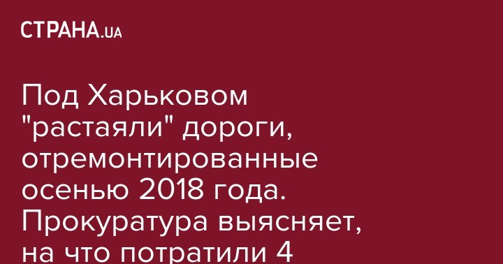 В Харьковской области дороги, отремонтированные в 2018 году, "растаяли" вместе со снегом. Теперь прокуратура расследует возможные злоупотребления, допущенные местной властью при заключении договора с подрядчиком. Об этом сообщает пресс-служба прокуратуры Харьковской области.