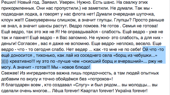 Высказывание Юлии Тимошенко он назвал "лаем из соседнего села", а ее - "скисшим и вчерашним борщом" (цитата приведена и выделена ниже).
