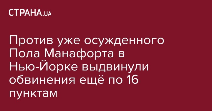 Отмечается, окружной судья Сайрус Вэнс огласил обвинения по 16 пунктам. Речь идет об участии в сговоре, фальсификации деловой документации и мошенничестве.