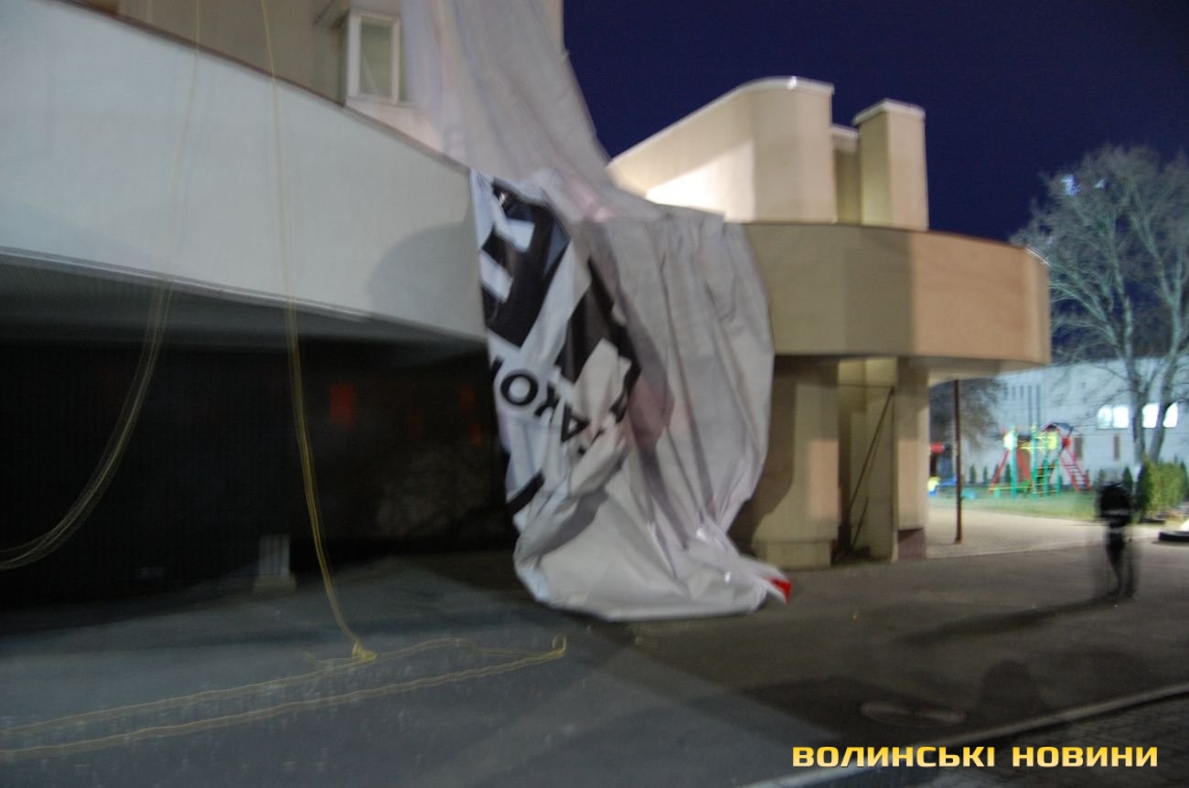 По данным издания "Волынские новости", это обращение успело провисеть на фасаде лишь несколько часов.