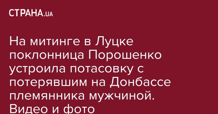 Сегодня в Луцке произошел словесный конфликт между поклонницей президента Петра Порошенко и критиковавшим его мужчиной, который в итоге перерос в потасовку. Женщина порвала плакаты с неудобными для Порошенко вопросами, а мужчина пытался ей помешать, в результате чего завязалась драка. Сотрудники полиции попытались задержать мужчину, но в итоге он был отпущен, так как толпа начала кричать в сторону силовиков "ганьба!", передают Волынские новости.
