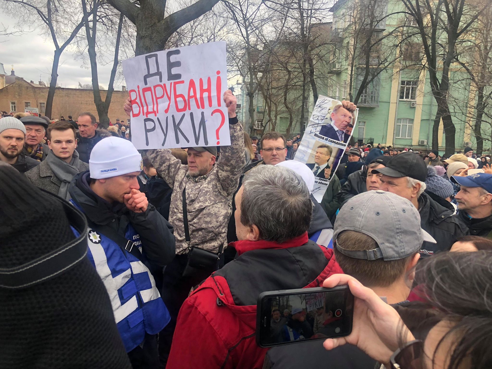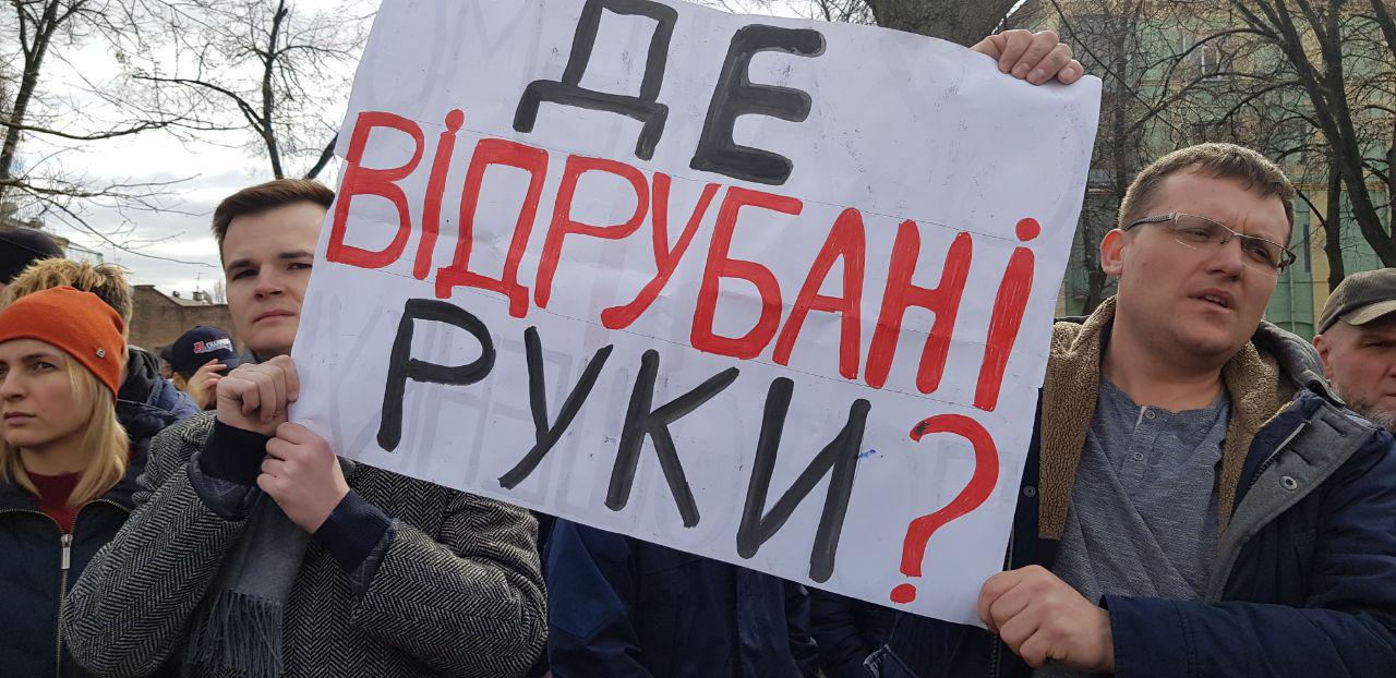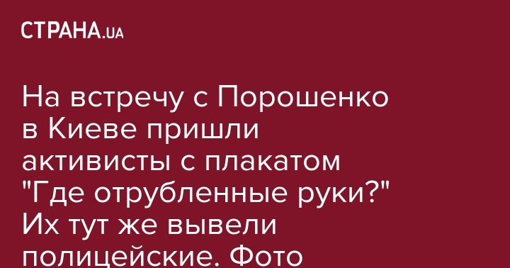 В воскресенье, 17 марта, в Киеве проходит предвыборная акция под названием "Народная встреча Порошенко". На нее пришла группа активистов с плакатом "Де відрубані руки" и вспоминавших Иловайский котел в АТО. К ним мгновенно пришла полиция диалога, после окружили правоохранители и вывели из толпы. Об этом сообщает находящаяся на месте корреспондент "Страны".