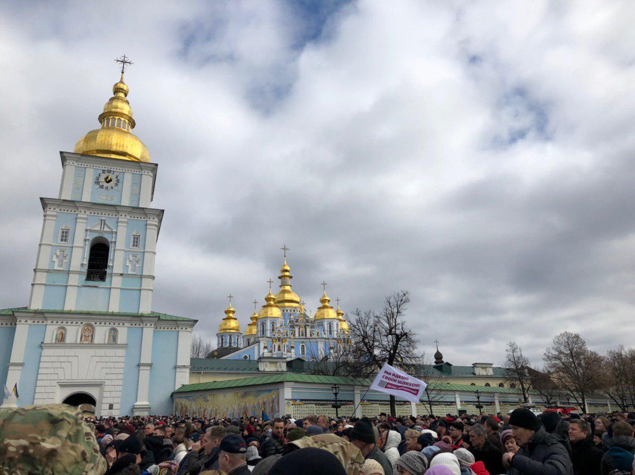 Напомним, сейчас в центре Киева перекрыли ряд улиц. В частности, это Крещатик, Михайловская, Владимировская и Малая Житомирская. Ожидается, что президент Украины Петр Порошенко выйдет на Михайловскую площадь с около 12:00.