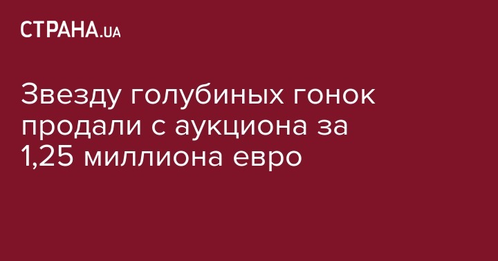 Вчера, 17 марта, на аукционе в Бельгии продали голубя за 1,25 млн. евро. Птица по имени Армандо - звезда соревнований по гонкам среди голубей. Покупателем стал неизвестный ценитель голубей из Китая. Об этом сообщает Var-matin.