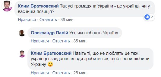 В комментариях к скандальному посту Палия упрекнули в том, что он делит украинцев на правильных и неправильных. И пиарщик Порошенко это с готовностью подтвердил.