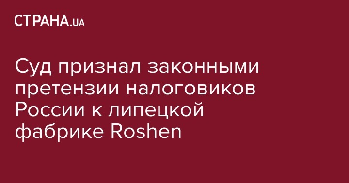 Сегодня, 18 марта, Арбитражный суд Липецкой области отказал в удовлетворении требований АО "Липецкая кондитерская фабрика "Рошен" ("дочка" корпорации Roshen) о признании незаконным решения межрайонной инспекции ФНС по крупнейшим налогоплательщикам по Липецкой области о доначислении 361,5 млн рублей налогов. Об этом сообщает "Интерфакс"