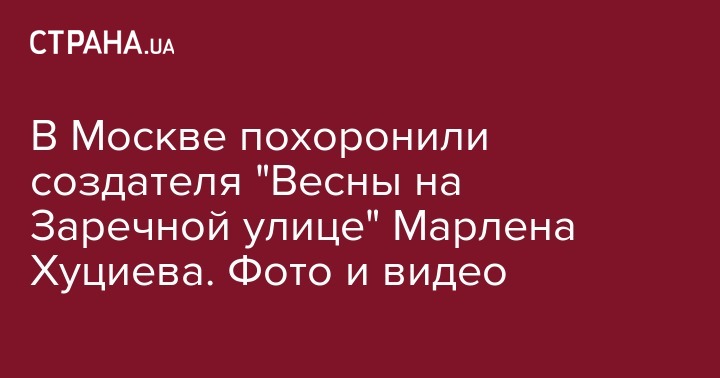 В четверг, 21 марта, на Троекуровском кладбище в Москве похоронили легендарного режиссера Марлена Хурциева, который 19 марта скончался в возрасте 93 лет. Об этом сообщил корреспондент "Страны" с места событий.