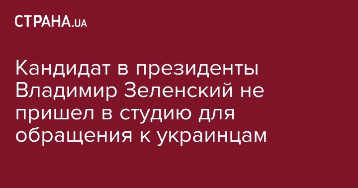 Кандидат в президенты Владимир Зеленский не пришел в студию для обращения к украинцам