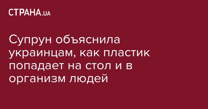 По словам Супрун, что пластик находят повсюду, даже на дне самой глубокой впадины в мире. Его частицы меньше 5 мм имеются в арктических ледниках, морях, реках и океанах, почве, соли, меде и даже в воздухе. Пластиком загрязнена и вода как в кране, так и в бутылках. В одном из исследований более 80% образцов воды, которые взяли в разных частях мира, были загрязнены микропластиком.