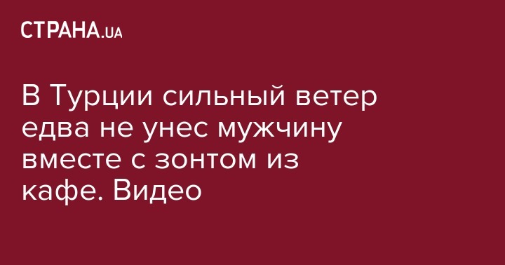 В Турции сильный ветер едва не унес мужчину вместе с зонтом из кафе. Видео