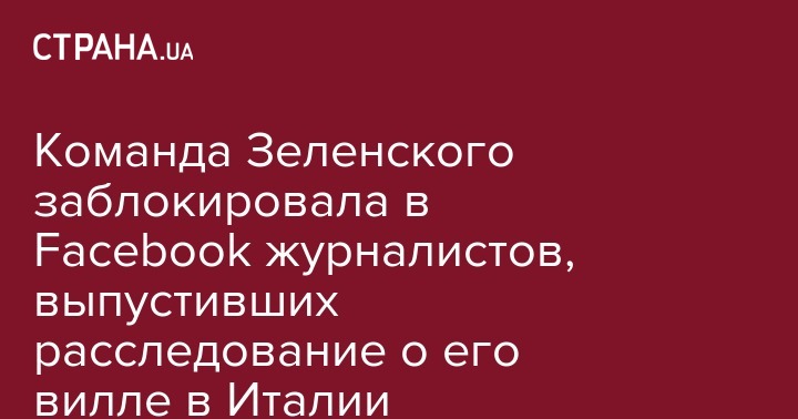 Команда Зеленского заблокировала в Facebook журналистов, выпустивших расследование о его вилле в Италии