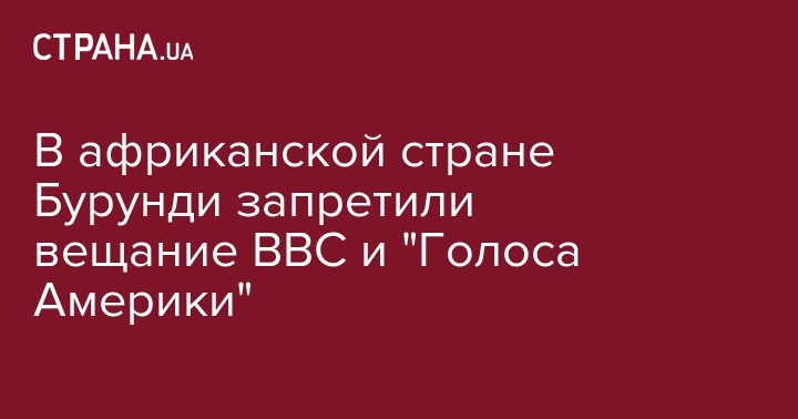 В африканской стране Бурунди запретили вещание "Голоса Америки" и ВВС. Также под запрет попали и журналисты, их лишили права сотрудничать с данными СМИ, передает "ГА".