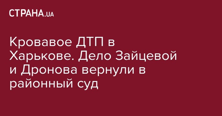 В Харьковском апелляционном суде вернули дело о смертельном ДТП, виновниками которого стали Елена Зайцева и Геннадий Дронов в Киевский райсуд Харькова.