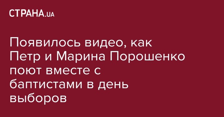 В распоряжении "Страны" оказалось видео, на котором Марина Порошенко вместе с мужем, президентом Петром Порошенко, распевают баптистские псалмы во время визита в "Храм мира" 31 марта, где секретарь СНБО Александр Турчинов читал свою проповедь. Ролик опубликован на YouTube-канале Страна.ua.