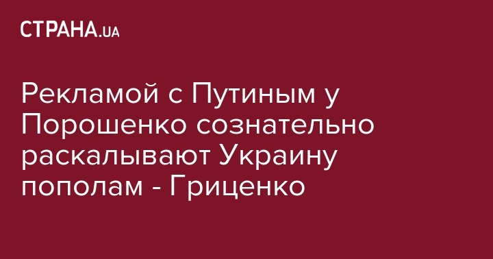 Рекламой с Путиным у Порошенко сознательно раскалывают Украину пополам - Гриценко