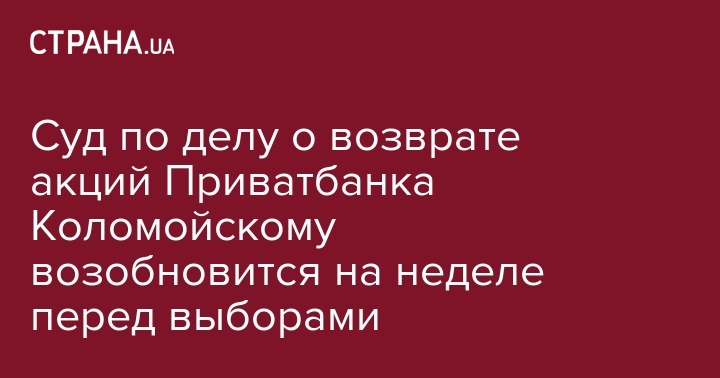 Суд по делу о возврате акций Приватбанка Коломойскому возобновится на неделе перед выборами