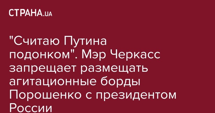 "Считаю Путина подонком". Мэр Черкасс запрещает размещать агитационные борды Порошенко с президентом России