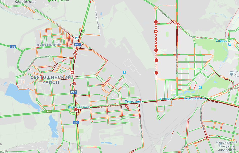 В связи с выполнением работ по капремонту движение транспорта по нечетной стороне на участке от улицы Академика Булаховского до Кольцевой дороги будет закрыто.