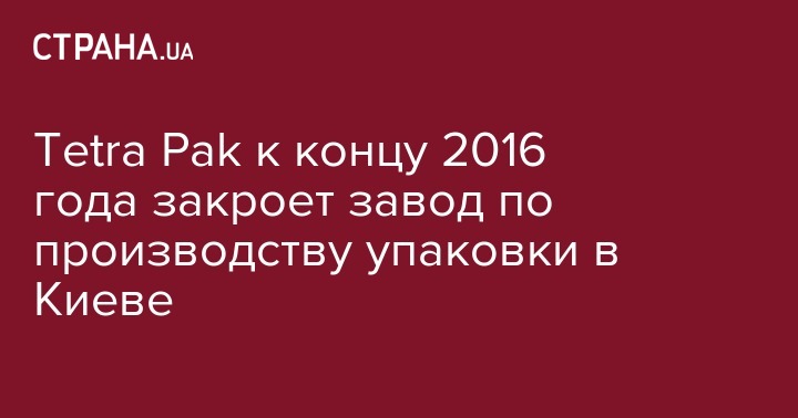 Компания Tetra Pak планирует к 31 декабря 2016 года закрыть свой завод по изготовлению упаковки в Киеве. Об этом сообщает пресс-служба компании.
