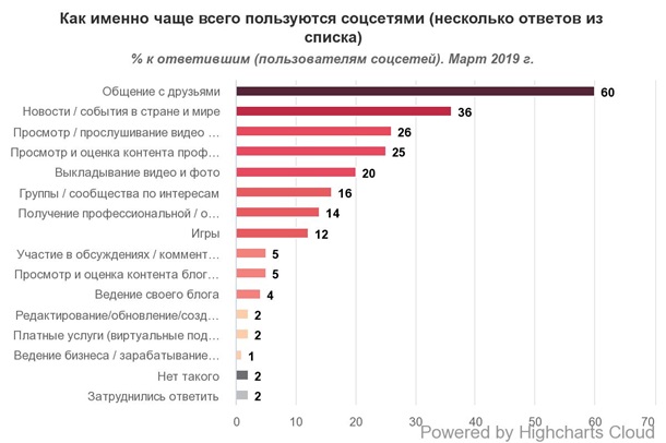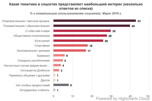 Более всего украинских пользователей интересует развлекательный и познавательный контент. Только 36% используют соцсети, чтобы узнать новости, а 60% пользуются ими для общения с друзьями.