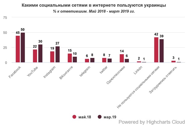 За последний год в Украине также увеличился процент пользователей YouTube (30%) и Instagram (27%). Одноклассники и ВКонтакте стремительно теряют украинских пользователей, сейчас их 6% и 10% соответственно.
