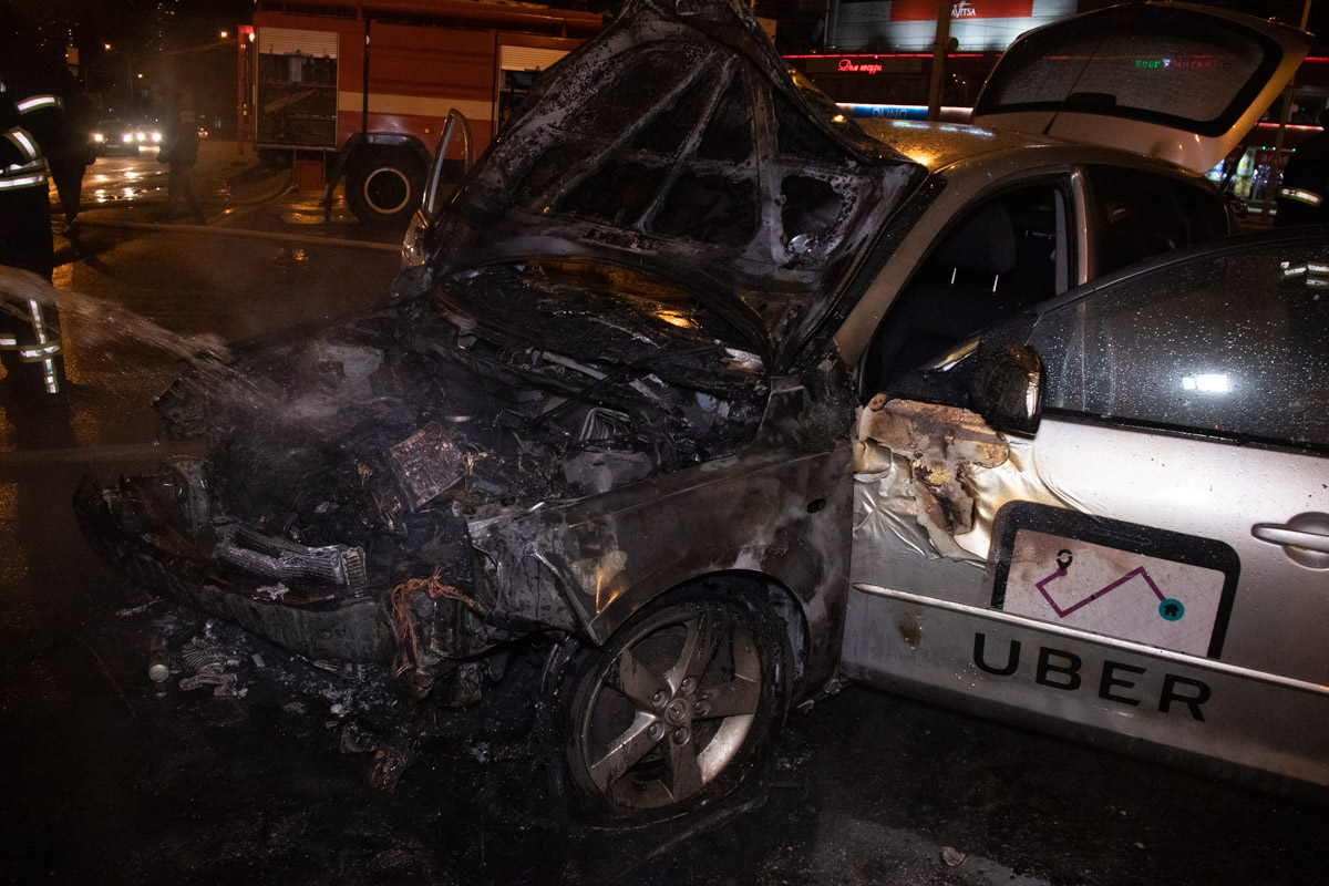 В ночь на воскресенье, 14 апреля, в Киеве на Дарницкой площади произошло ДТП с пожаром. Столкнулись автомобиль Mazda 3 (такси Uber) и Hyundai Elantra. Вызов на линию экстренных служб поступил около 04:15 утра.