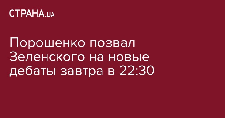 Порошенко позвал Зеленского на новые дебаты завтра в 22:30