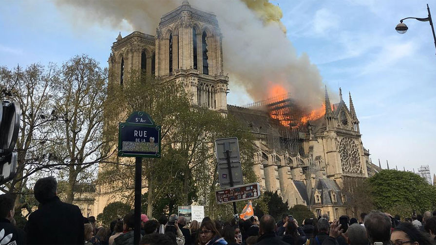 "Прохожие, на глазах которых горел собор, рыдали, незнакомые люди обнимали друг друга. Париж окутан дымом, в районе пожара тяжело дышать, першит в горле и болит голова. Многие удивлялись, почему вначале валил желтый дым. Говорят, это от горящей на крыше меди", - рассказал "Стране" Люк-Антуан Ленуар, журналист Figaro, который находился на месте события.
