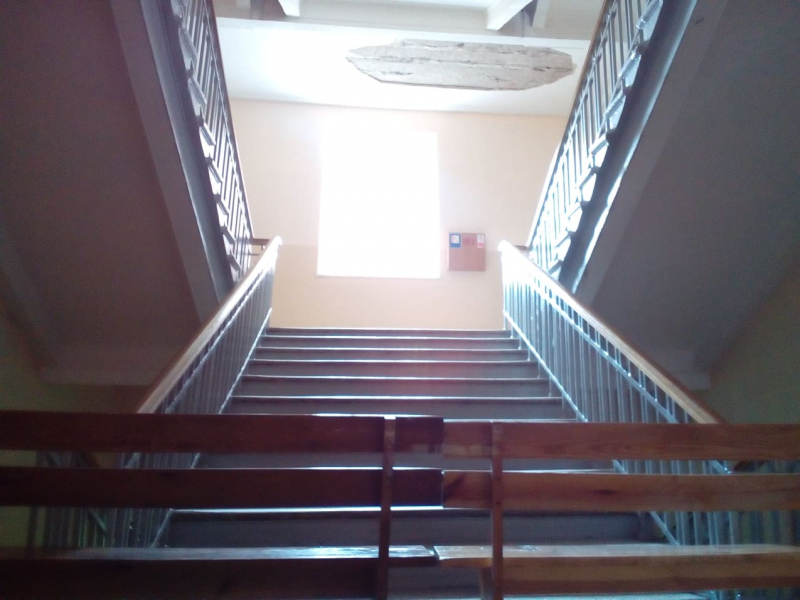 В харьковской школе № 5 посреди дня обвалилась часть потолка. Опасный инцидент произошел в пролете лестничной клетки.